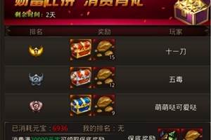 跨服消费排行榜(超值特惠版)【活动时间】2020年5月31日00:00-2020年6月4日23:59【活动内容】风云乱世,谁主沉浮?励兵秣马,问鼎巅峰!跨服榜主恩惠全服,神秘大礼由你定夺!【活动规则】