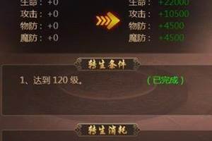 随着玩家实力以及游戏水平的提升,我们的角色也渐渐来到了重要的分水岭——转生期,字啊角色达到一百二十级时,就可以开始自己的第一次转生了,尽管转生需要消耗大量的资源,可这也是角色做出新的突破的第一步,带来