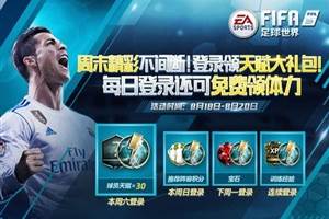 尊敬的玩家您好!为了帮助您在快乐的周末尽情体验《FIFA足球世界》,我们特定为您送上了一份天赋与体力大礼包!在活动期间登录游戏,您不但可以获得多达30个球员天赋,还可以每天额外领取30点体力,助您轻松