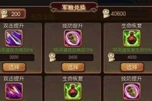 军粮商店可根据本身阵容来适当性选择,比如防御型英雄给他选择回复生命,增加技防和防御的buff,这样可以提升其在战场中的存活性,为后排攻击型英雄提供输出机会。至于攻击提升的buff这就不用多说了,选择