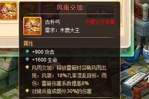 乐蜀三国木鹿大王也即将有了属于自己的武器,名字叫做风雨交加,这个新推出的武器适合木鹿大王吗?风雨交加怎么样?下面就和小编一起来看这篇攻略吧!我们首先来看看这把武器的属性。+900攻击+1600生命,可
