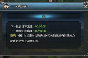 每30分钟远征军在大地图上从国家的主城向三个不同的方向派出15队远征军,攻打其他国家的城市,帮助玩家一起进行大地图城市争夺.玩家可以从大地图上看到远征军行军的路线,进行阻拦其他国家的远征军进攻获得丰厚