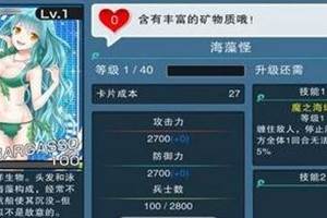 神女控R卡海藻怪最常说的话是“含有丰富的矿物质哦”,今天小编要给大家介绍的就是神女控R卡海藻怪数据图鉴,一起来看吧。 简介:神秘的海洋生物,头发和泳装都是用海藻构成,经常不小心缠住航船使其沉默,但