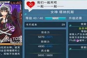 神女控R卡女神塔纳托斯最常说的话是“我们一起死吧,一起,一起”,今天小编要给大家介绍的就是神女控R卡女神塔纳托斯数据图鉴,一起来看吧。 简介:将死亡神格化的女神,被其诱惑的人都会变得憧憬死亡,崇拜