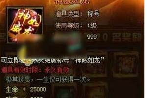网页游戏《武神赵子龙》中称号神威如龙能为玩家提升部分属性,并且每位玩家只能获得一次。接下来小编就来介绍一下《武神赵子龙》中称号神威如龙的获得方法,一起来看!称号神威如龙是专属全服消费排行榜第4-10名