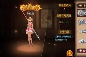 称号系统系统描述:称号是彰显玩家实力的表现,也是对玩家实力与贡献的表彰称号来源:1.普通称号来源于门派战、势力战以及武林血战等PVP活动。2.特殊称号来源于游戏内的运营活动:如累计充值达到一定数目可以