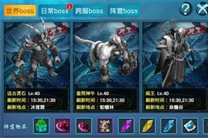 1.玩法说明1.每天下午15:30和晚上21:30刷新世界BOSS;2.世界BOSS刷新后之后,只会存在4小时,4小时后没被击杀,BOSS将自行离开;3.击杀世界BOSS有机会获得至尊水晶,用来打造极