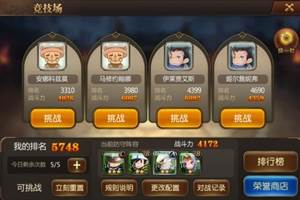 英雄对决(竞技场)展现自己实力的地方,首次达到最高排名还能获得大量钻石奖励,竞技场中还能获得荣誉点在商店中兑换超值物品。1、每天可以免费挑战5次,挑战失败则会进入10分钟挑战冷却时间2、根据VIP等级