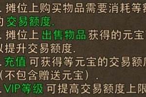 买卖是玩家之间互换所需物品道具必要存着的,传奇战域里面的摆摊系统就是如此,从V0-V18之间的交易额度都有不同,如图:上图是用户目前的交易额度上限,左边是用户目前所可以使用的交易额度。并且根据VIP进