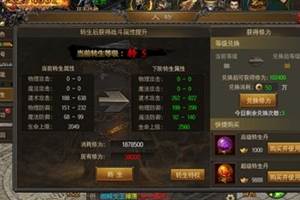 在《烈火雷霆》里面,提升转生等级能够大大得提高角色的属性,而且可以穿上强力的高转装备。转生需要修为,每日可以用降级的方法来获得修为等级越高降级获得的修为越高,每日限制降级3次。还可以通过商城购买转生丹