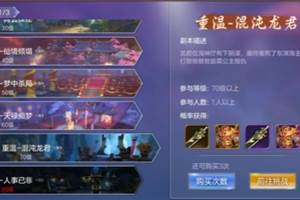 副本名称:剧情重温--混沌龙君(70级剧情副本)副本描述:龙君在海神厅布下阴谋,最终害死了东溟海主,打败他替。副本进入要求:70级以上,1人以上。副本奖励:70级橙色装备、70级紫色装备等。难点:BO