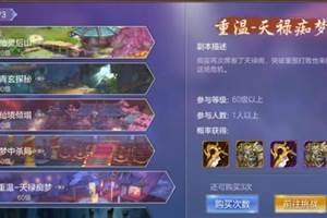副本名称:剧情重温--天禄痴梦(60级剧情副本)副本描述:痴妄再次席卷了天禄阁,突破重围打败他来解救这场危机。副本进入要求:60级以上,1人以上。副本奖励:60级橙色装备、60级紫色装备等。难度方面:
