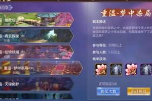 副本名称:剧情重温--梦中杀局(50级剧情副本)副本描述:金璧辉煌的皇宫之中,大煜皇朝当今圣上长孙世安深陷噩梦之中无法自拔,究竟是谁布下了这必杀之局?副本进入要求:50级以上,1人以上。副本奖励:50
