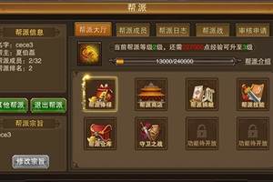 开启方式点击游戏主界面左上方的角色头像,在下方弹出的菜单内选择帮派既可开启界面。系统介绍1、帮派由一位玩家创建,其他玩家可以加入别人的帮派。2、帮派成员可以进行帮派活动,如帮派战、守卫之战等活动。3、