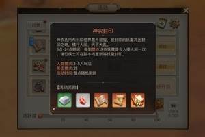 神农封印是一个多人组队的玩法,玩家在组建好队伍后需要在整点时间前往特定的地点对刷新的怪物进行封印(击败即可)。成功封印后可以获得丰厚的道具奖励。在神农封印怪物刷新的同时,怪物所处的地图还会随机刷出封印