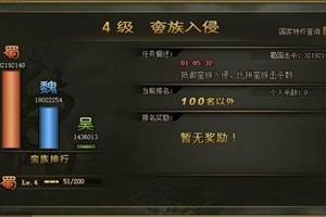 攻城掠地国家任务取胜心得攻略。攻城掠地改版后,国家任务成了升级的最重要方式,每日参加国家任务可以获得大量的经验和铁资源,下面,介绍几个国家任务的完成方式:攻城掠地1、投资、杀敌任务:投资和杀敌任务主要