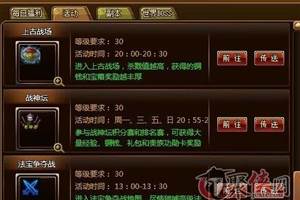 神座远古战场介绍:战场每天固定时间开启,万马狂奔,红沙飞舞,杀意沸腾,力敌群雄!纵横上古战场,体验快意恩仇。只要你进入,就能尽情pk!一.参与需知:1.活动时间:每天20:00~20:30;2.角色级