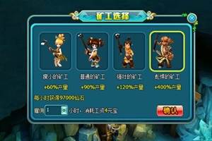 晶矿之战开启条件玩法说明:晶矿之战是一个让玩家获取大量仙石的玩法,点击即可进入。玩家可选择不同种类的矿工进行雇佣哦。不同种类的矿工需要花费不同的仙石、元宝数量,最高可以加成400%的产量哦。我们还可以