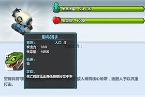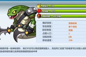 疯狂联盟6月4日更新中新增了空降兵营及空降兵玩法,并且让大家抢先体验到了剧毒猎手这个兵种,它究竟实力如何,我们一起来看看吧。大家仔细看这新兵种的数据:攻击力330(很弱),生命值4050(中等)。虽然