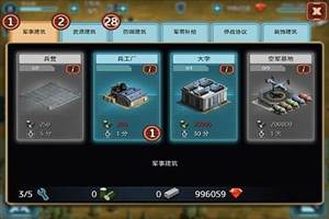 玩家通过对建筑的建造升级,来提高基地的防御和生产系数。建筑可以分为资源建筑、军事建筑、防御建筑、装饰物、障碍物。建筑的不同阵型摆法决定基地防御系数。建筑生成分为系统给予与资源购买。当玩家第一次登陆游戏