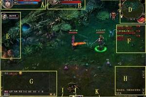 A—人物信息栏:显示玩家角色的HP、MP、等级、姓名以及PK状态,密码锁状态等简单信息。B—目标头像区:显示当前目标的HP、MP、等级信息。C—BUFF区域:显示玩家当前的增益与减益状态。D—雷达区: